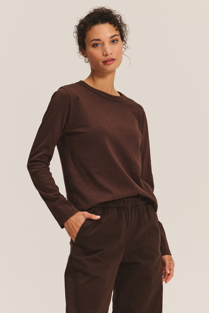 CROPPED LONG SLEEVE TEE - COFFEE BEAN